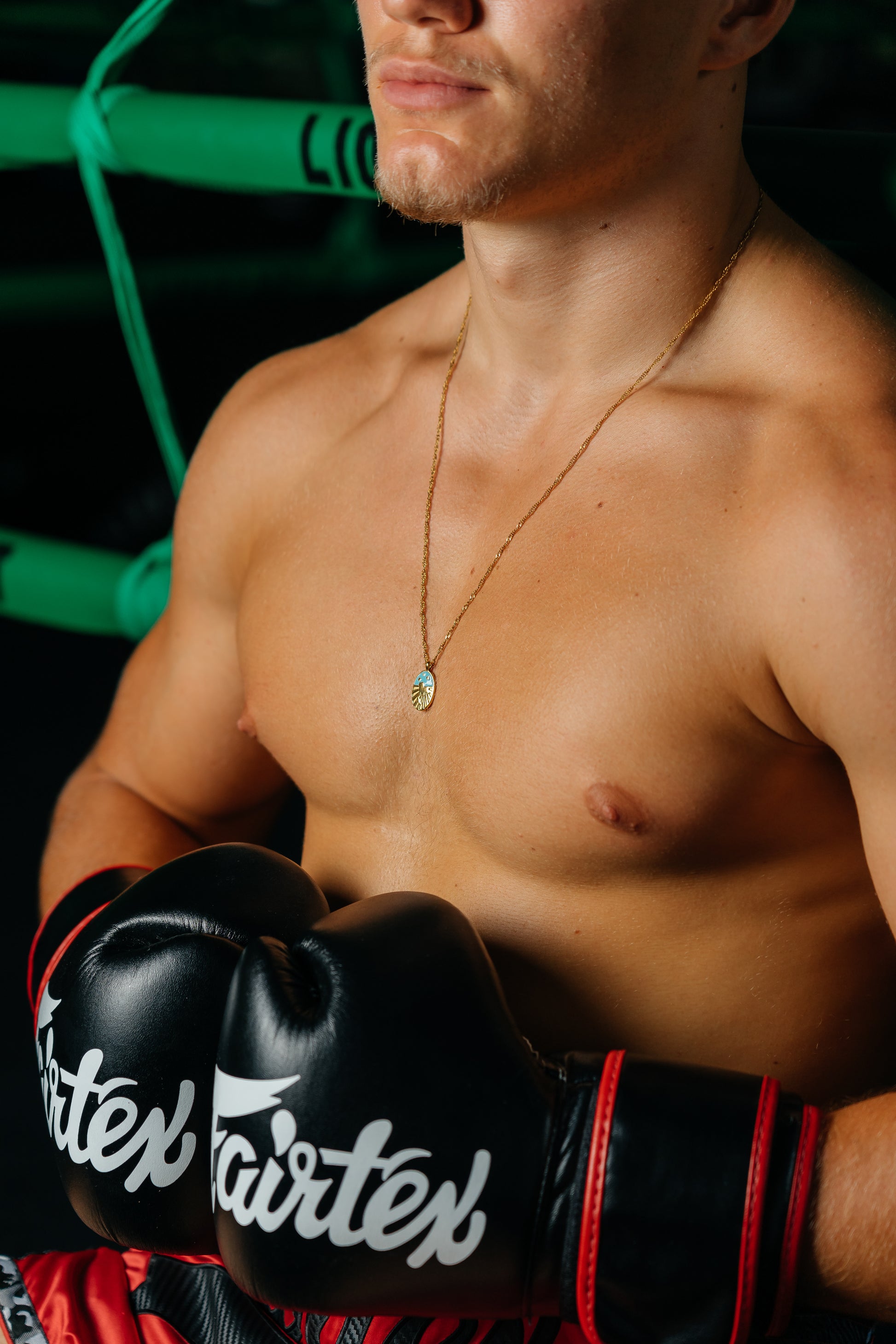 Gold pendant featuring a map of Thailand beneath a bright blue sky with radiant sun rays. Paired with a long, elegant waterwave gold chain for a timeless look.
