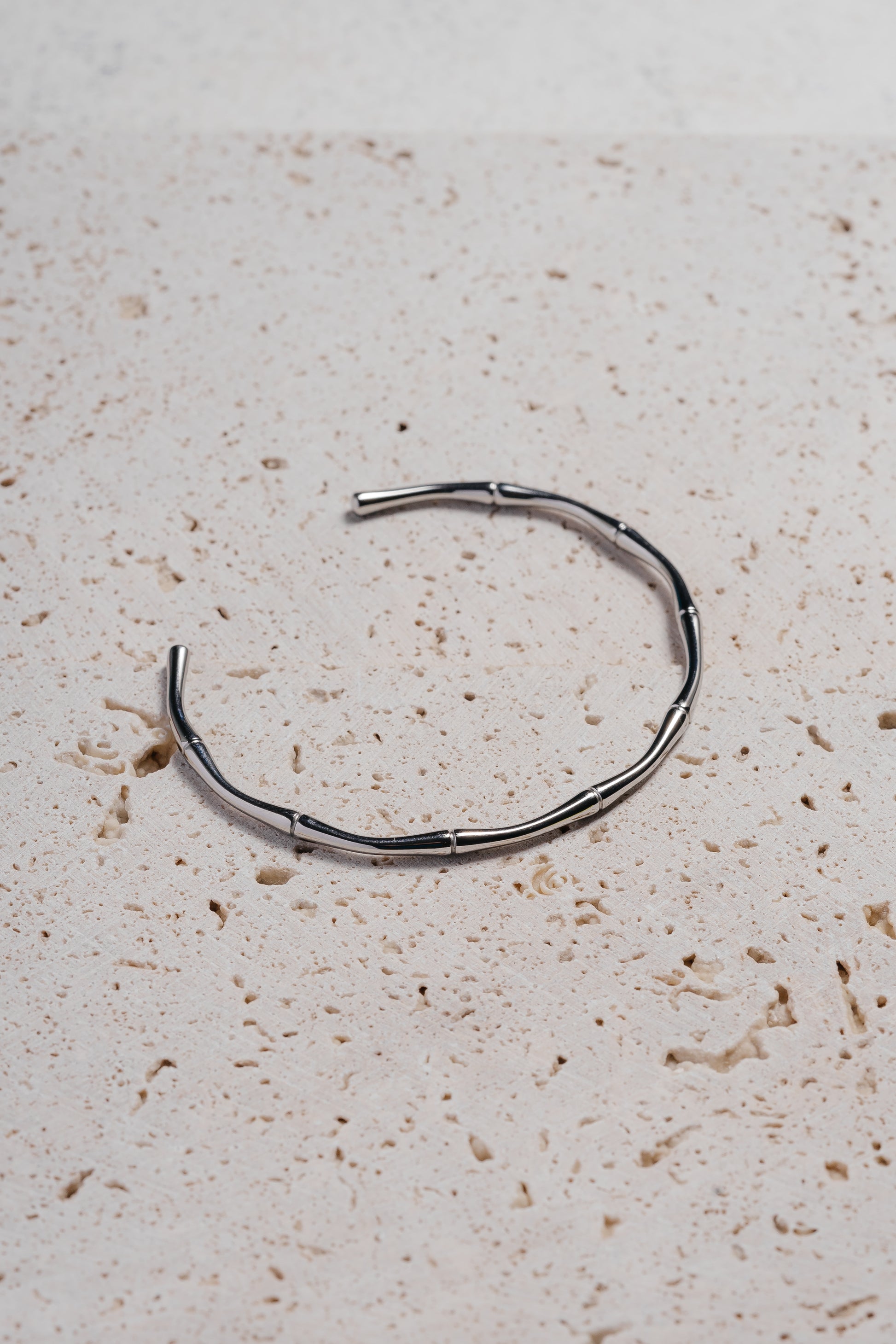 Sculptural and sleek, this bracelet mimics the shape and texture of natural bamboo for an organic, elegant finish. Wear it solo or stack it for a touch of island-inspired style.