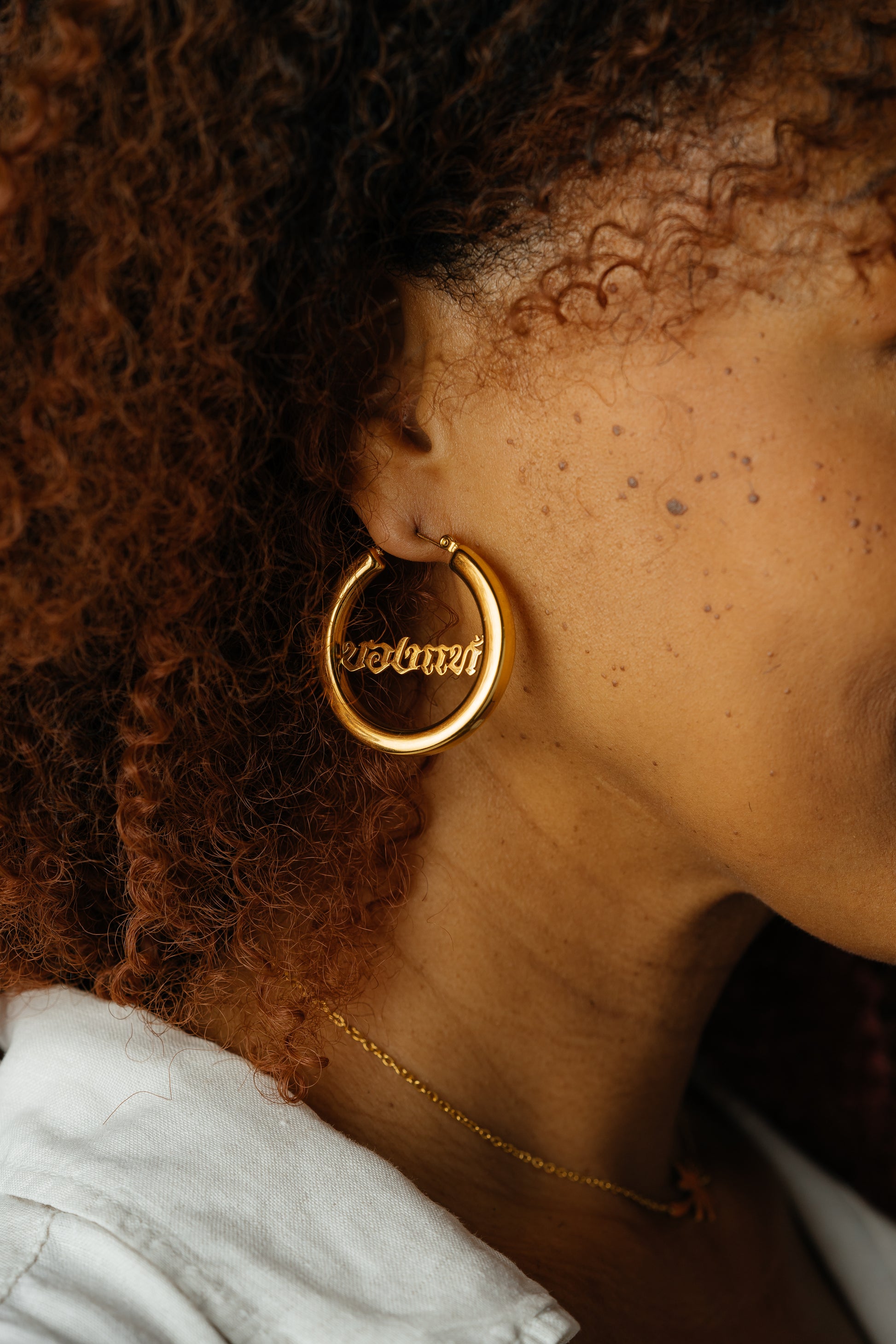 แสดงออกถึงความโดดเด่นด้วยต่างหูห่วงแท้คู่นี้ ซึ่งมีคำว่า "ของแท้" ในภาษาไทยห้อยไว้บนห่วงทองคำแบบคลาสสิกอย่างสง่างาม ต่างหูคู่นี้ได้รับการออกแบบให้เป็นสัญลักษณ์แห่งความแท้จริงและการแสดงออกถึงตัวตน โดยผสมผสานตัวอักษรแบบดั้งเดิมเข้ากับสไตล์ร่วมสมัย เหมาะสำหรับผู้ที่ยึดมั่นในความจริง