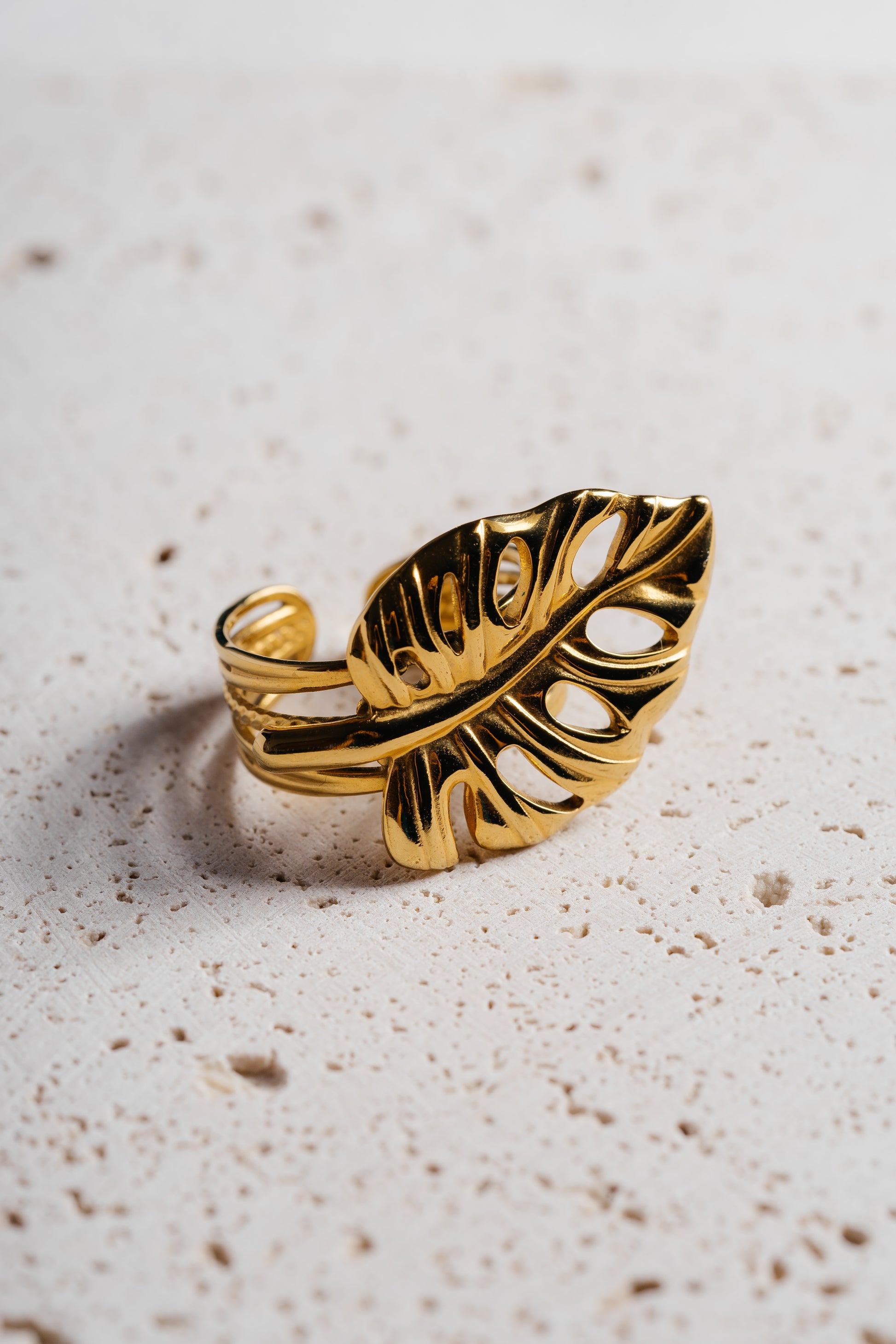 แหวน Monstera ที่ได้รับแรงบันดาลใจจากความงามของเขตร้อน เป็นชิ้นงานที่โดดเด่นแต่สง่างาม แหวนวงนี้โดดเด่นด้วยใบมอนสเตอร่าที่ประณีตบรรจง สะท้อนถึงแก่นแท้ของธรรมชาติอันอุดมสมบูรณ์ของไทยและสไตล์เกาะที่ลงตัว ดีไซน์แบบโปร่งช่วยให้แสงผ่านได้ ช่วยเสริมให้แหวนดูสวยงามละเอียดอ่อนแต่สะดุดตา